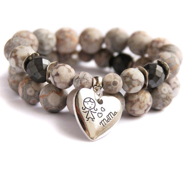 nowa odsłona kaktusiowych pomysłów na idealne prezenty :) bransoletki są dość uniwersalne i występują w najpopularniejszych kolorach, więc na pewno znajdziesz u mnie trafiony prezent ;-) TUTAJ: okazała bransoletka dla TWOJEJ MAMUSI. wykonana ze sporych kul MATOWEGO JASPISU oceanicznego (12mm) w odcieniach beżu. dodatkowo: po 2 kule fasetowanego hematytu (12mm) i jaspisu (10 i 8mm)...... (UWAGA! zdj. poglądowe. wybarwienie kamieni delikatnie różni się w każdej bransoletce) . duża zawieszka z napisem MAMA (jednostronna).... kamienie na solidnej lince elastycznej.... .... JASPIS – działa kojąco i uspokajająco w okresie wzmożonego stresu; daje siłę i energię.... OBW. WEWNĘTRZNY: 17cm... możesz ją nosić samodzielnie lub dowolnie łączyć z innymi bransoletkami z mojego sklepiku. ... !!!UWAGA!!! .... cena dotyczy 1 bransoletki (na górze zestawu) - ZOBACZ CAŁĄ KOLEKCJĘ!!! ... MOJA BIŻU ZAWSZE PODRÓŻUJE OZDOBNIE ZAPAKOWANA - opakowanie hand made ;-)
