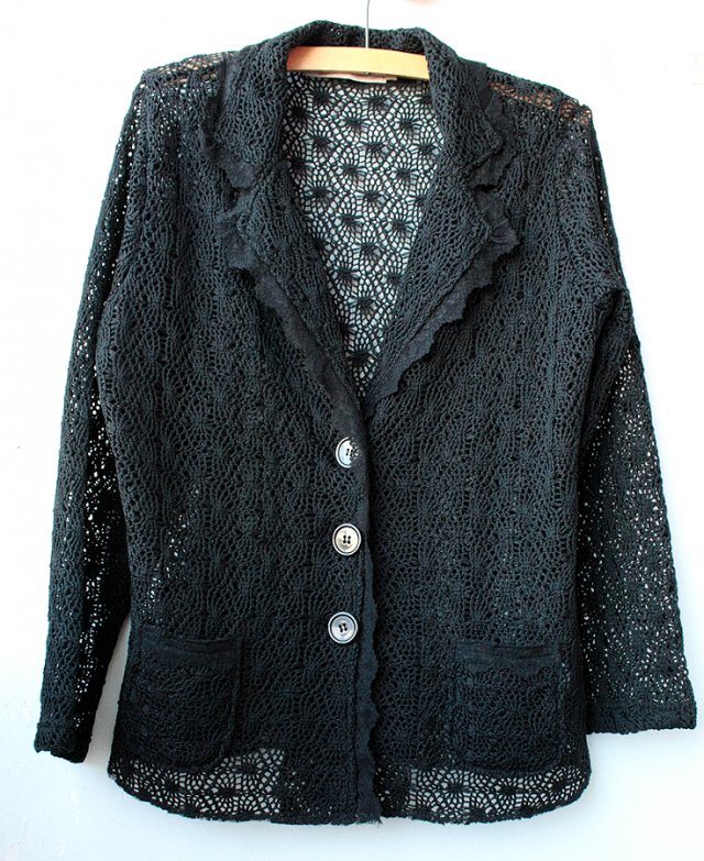 Czary ażurowy kardigan z łądnym kołnierzem. Idealna dla Pani o kobiecych kształtach.