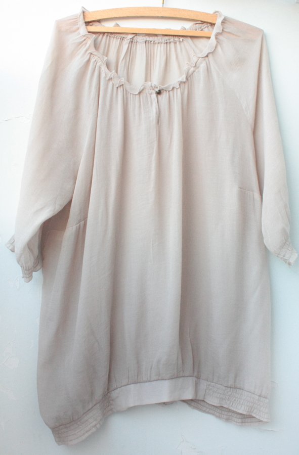 Jasnobeżowa bluzka lub tunika idealna dla Pani o puszystych kształtach.