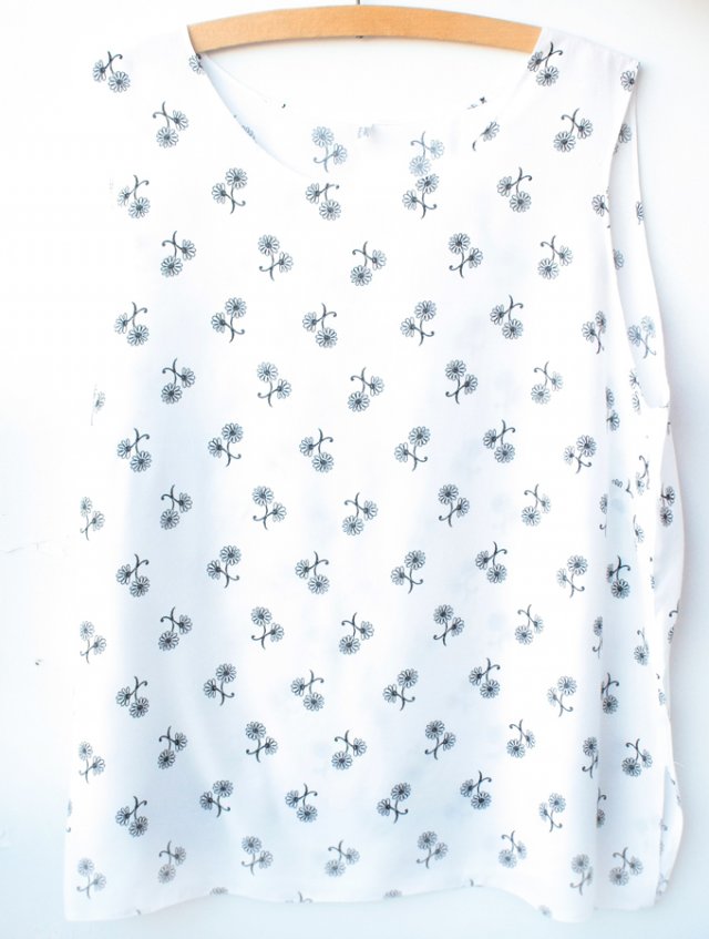 Biała bluzka w czarne kwiatki uszyta z wiskozy. Na bokach niewielkie rozporki. Idealna dla Pani o kobiecych kształtach.
