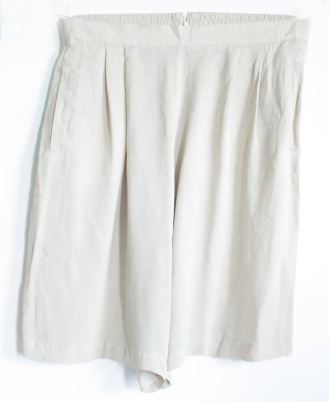 Beżowe szorty w drobniutki, bardzo delikatny rzucik. Będą idealne dla Pani o puszystych kształtach.