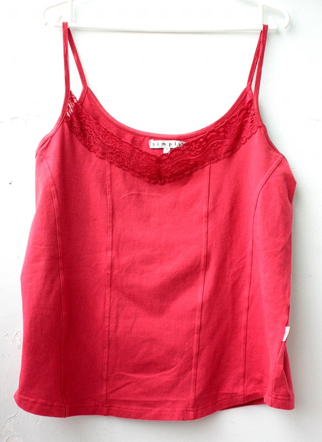Czerwona bluzka wykończona koronką. Idealna dla Pani o puszystych kształtach. Materiał to 95% bawełna, 5% elastan. Tkanina nie jest zbyt cienka, ładnie się układa i lekko dopasowuje do sylwetki. Nie jest to typ cienkiego bieliźnianego podkoszulka :)