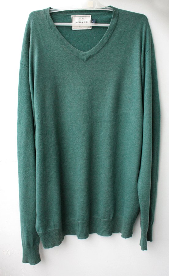 Sweter marki John Lewis wykonany z miękkiej w dotyku dzianiny w odcieniu leśnej zieleni. Produkt unisex.