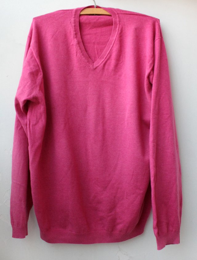 Miękki sweterek z kaszmiru i bawełny. Kolor nie jest landrynkowy, to głęboka fuksja. Idealna dla osób o puszystych kształtach.