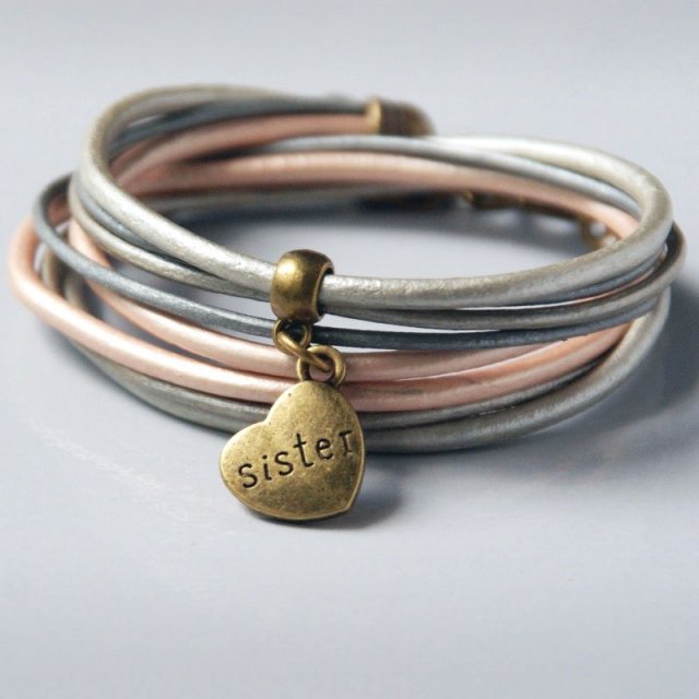 siostrę swą kochać trzeba. trzeba i już - takie są zasady ;-) ... z miłości do mojej siostrzyczki - kolejna odsłona siostrzanej kolekcji! TERAZ TEŻ Z ELEMENTAMI W KOLORZE ANTYCZNEGO ZŁOTA.... bransoletki są dość uniwersalne i występują w najpopularniejszych kolorach, więc na pewno znajdziesz u mnie trafiony prezent ;-) TUTAJ: delikatna bransoletka wykonana z 4 rzemieni ze 100% skórki naturalnej w odcieniach metalicznych/perłowych (2 rzemienie 2mm, 2 rzemienie 3mm). zawieszka i wykończenie w kolorze antycznego złota. długość regulowana za pomocą łańcuszka. BRANSOLETKA PASUJE NA NADGARSTEK OD 14CM. możesz ją nosić samodzielnie lub dowolnie łączyć z innymi bransoletkami z tej serii. świetnie prezentuje się też w zestawieniu z bransoletkami z kamieni naturalnych. ZOBACZ CAŁĄ KOLEKCJĘ!!! ... MOJA BIŻU ZAWSZE PODRÓŻUJE OZDOBNIE ZAPAKOWANA - opakowanie hand made ;-) ... UWAGA: cena dotyczy 1 bransoletki - jeśli chcesz zrobić prezent również sobie - kup jeszcze jedną - zostaną zapakowane dla każdej z sióstr osobno ;-)