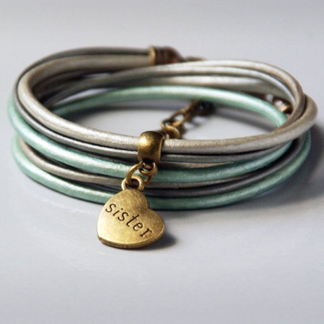 siostrę swą kochać trzeba. trzeba i już - takie są zasady ;-) ... z miłości do mojej siostrzyczki - kolejna odsłona siostrzanej kolekcji! TERAZ TEŻ Z ELEMENTAMI W KOLORZE ANTYCZNEGO ZŁOTA.... bransoletki są dość uniwersalne i występują w najpopularniejszych kolorach, więc na pewno znajdziesz u mnie trafiony prezent ;-) TUTAJ: delikatna bransoletka wykonana z 4 rzemieni ze 100% skórki naturalnej w odcieniach metalicznych/perłowych (2 rzemienie 2mm, 2 rzemienie 3mm). zawieszka i wykończenie w kolorze antycznego złota. długość regulowana za pomocą łańcuszka. BRANSOLETKA PASUJE NA NADGARSTEK OD 14CM. możesz ją nosić samodzielnie lub dowolnie łączyć z innymi bransoletkami z tej serii. świetnie prezentuje się też w zestawieniu z bransoletkami z kamieni naturalnych. ZOBACZ CAŁĄ KOLEKCJĘ!!! ... MOJA BIŻU ZAWSZE PODRÓŻUJE OZDOBNIE ZAPAKOWANA - opakowanie hand made ;-) ... UWAGA: cena dotyczy 1 bransoletki - jeśli chcesz zrobić prezent również sobie - kup jeszcze jedną - zostaną zapakowane dla każdej z sióstr osobno ;-)