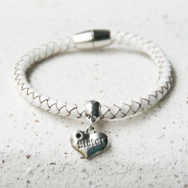 siostrę swą kochać trzeba. trzeba i już - takie są zasady ;-) ... z miłości do mojej siostrzyczki - kolejna odsłona siostrzanej kolekcji! bransoletki są dość uniwersalne i występują w najpopularniejszych kolorach, więc na pewno znajdziesz u mnie trafiony prezent ;-) TUTAJ: delikatna bransoletka wykonana z grubego, plecionego rzemienia ze 100% skórki naturalnej w KOLORZE BIAŁYM. zawieszka i wykończenie w kolorze srebrnym. ZAPIĘCIE MAGNETYCZNE - bardzo estetyczne i wygodne :) BRANSOLETKA PASUJE NA NADGARSTEK standardowy : 15-16CM... możesz ją nosić samodzielnie lub dowolnie łączyć z innymi bransoletkami z tej serii. świetnie prezentuje się też w zestawieniu z bransoletkami z kamieni naturalnych. ZOBACZ CAŁĄ KOLEKCJĘ!!! ... MOJA BIŻU ZAWSZE PODRÓŻUJE OZDOBNIE ZAPAKOWANA - opakowanie hand made ;-) ... UWAGA: cena dotyczy 1 bransoletki - jeśli chcesz zrobić prezent również sobie - kup jeszcze jedną - zostaną zapakowane dla każdej z sióstr osobno ;-)