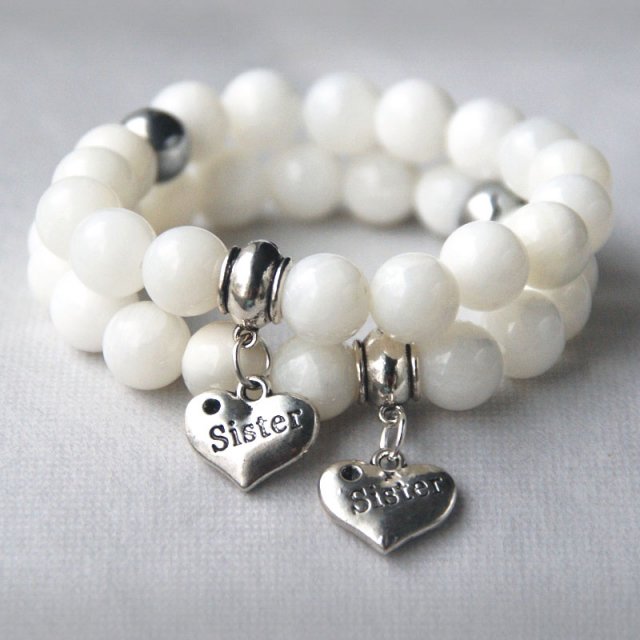siostrę swą kochać trzeba. trzeba i już - takie są zasady ;-) ... z miłości do mojej siostrzyczki - kolejna odsłona siostrzanej kolekcji! bransoletki są dość uniwersalne i występują w najpopularniejszych kolorach, więc na pewno znajdziesz u mnie trafiony prezent ;-) TUTAJ: delikatna, lecz okazała bransoletka wykonana z kul białej muszli (10mm) - biel/krem. zawieszka i kula hematytu kolorze srebrnym. kamienie na solidnej lince elastycznej.... BRANSOLETKA PASUJE NA NADGARSTEK standardowy : 15,5-16,5CM... możesz ją nosić samodzielnie lub dowolnie łączyć z innymi bransoletkami z mojego sklepiku. ZOBACZ CAŁĄ KOLEKCJĘ!!! ... MOJA BIŻU ZAWSZE PODRÓŻUJE OZDOBNIE ZAPAKOWANA - opakowanie hand made ;-) ... UWAGA: cena dotyczy 1 bransoletki - jeśli chcesz zrobić prezent również sobie - kup jeszcze jedną - zostaną zapakowane dla każdej z sióstr osobno ;-)
