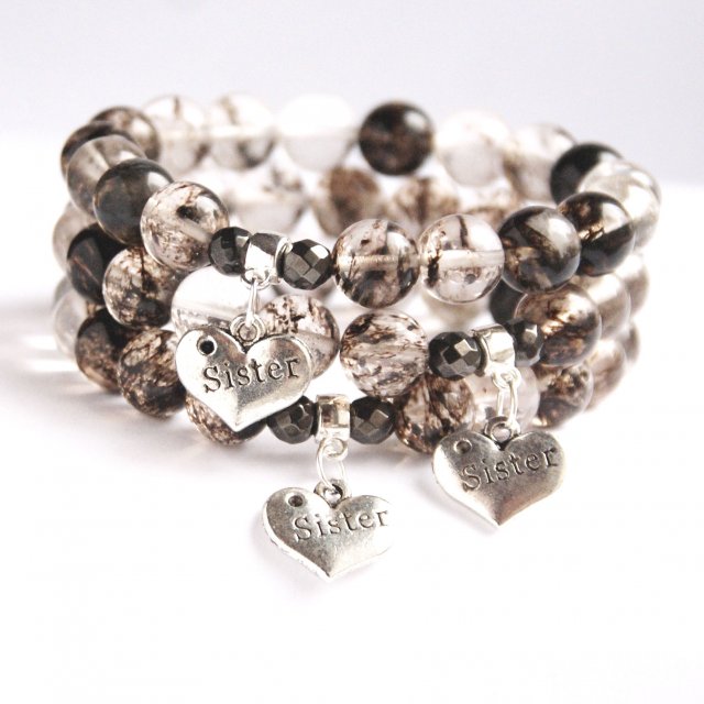 siostrę swą kochać trzeba. trzeba i już - takie są zasady ;-) ... z miłości do mojej siostrzyczki - kolejna odsłona siostrzanej kolekcji! bransoletki są dość uniwersalne i występują w najpopularniejszych kolorach, więc na pewno znajdziesz u mnie trafiony prezent ;-) TUTAJ: delikatna, lecz okazała bransoletka wykonana ze sporych kul kwarcu (10mm) . do tego dwustronna zawieszka SISTER i 2 kuleczki fasetowanego hematytu . kamienie na solidnej lince elastycznej.... KWARC - działa jako odpromiennik, skutecznie neutralizuje negatywne promieniowanie, harmonizuje, oczyszcza i chroni naszą aurę, wnosi jasność i czystość w umysł i duszę, jest niewyczerpanym źródłem energii... OBW. WEWNĘTRZNY BRANSOLETKI: 16,5CM... możesz ją nosić samodzielnie lub dowolnie łączyć z innymi bransoletkami z mojego sklepiku. ZOBACZ CAŁĄ KOLEKCJĘ!!! ... MOJA BIŻU ZAWSZE PODRÓŻUJE OZDOBNIE ZAPAKOWANA - opakowanie hand made ;-) ... !!!UWAGA!!! .... cena dotyczy 1 bransoletki - jeśli chcesz zrobić prezent również sobie - kup jeszcze jedną - zostaną zapakowane dla każdej z sióstr osobno ;-)
