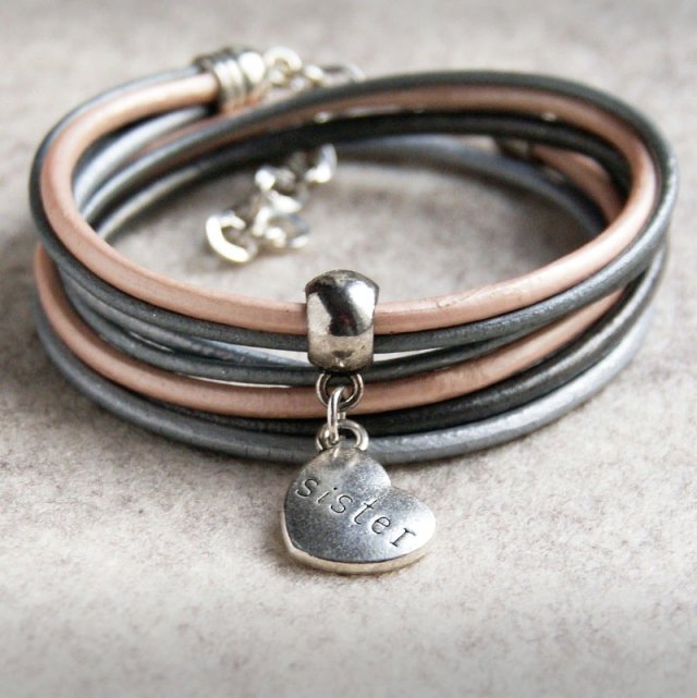 siostrę swą kochać trzeba. trzeba i już - takie są zasady ;-) ... z miłości do mojej siostrzyczki - kolejna odsłona siostrzanej kolekcji! bransoletki są dość uniwersalne i występują w najpopularniejszych kolorach, więc na pewno znajdziesz u mnie trafiony prezent ;-) TUTAJ: delikatna bransoletka wykonana z 4 rzemieni ze 100% skórki naturalnej w odcieniach metalicznych/perłowych (gruboś 2, 2,5 i 3mm). zawieszka i wykończenie w kolorze srebrnym. długość regulowana za pomocą łańcuszka. BRANSOLETKA PASUJE NA NADGARSTEK OD 14CM. możesz ją nosić samodzielnie lub dowolnie łączyć z innymi bransoletkami z tej serii. świetnie prezentuje się też w zestawieniu z bransoletkami z kamieni naturalnych. ZOBACZ CAŁĄ KOLEKCJĘ!!! ... MOJA BIŻU ZAWSZE PODRÓŻUJE OZDOBNIE ZAPAKOWANA - opakowanie hand made ;-) ... UWAGA: cena dotyczy 1 bransoletki - jeśli chcesz zrobić prezent również sobie - kup jeszcze jedną - zostaną zapakowane dla każdej z sióstr osobno ;-)