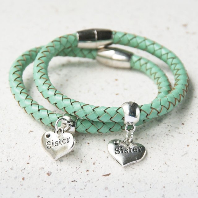 siostrę swą kochać trzeba. trzeba i już - takie są zasady ;-) ... z miłości do mojej siostrzyczki - kolejna odsłona siostrzanej kolekcji! bransoletki są dość uniwersalne i występują w najpopularniejszych kolorach, więc na pewno znajdziesz u mnie trafiony prezent ;-) TUTAJ: delikatna bransoletka wykonana z grubego, plecionego rzemienia ze 100% skórki naturalnej w KOLORZE MIĘTOWYM. zawieszka i wykończenie w kolorze srebrnym. ZAPIĘCIE MAGNETYCZNE - bardzo estetyczne i wygodne :) BRANSOLETKA PASUJE NA NADGARSTEK standardowy : 15-16CM... możesz ją nosić samodzielnie lub dowolnie łączyć z innymi bransoletkami z tej serii. świetnie prezentuje się też w zestawieniu z bransoletkami z kamieni naturalnych. ZOBACZ CAŁĄ KOLEKCJĘ!!! ... MOJA BIŻU ZAWSZE PODRÓŻUJE OZDOBNIE ZAPAKOWANA - opakowanie hand made ;-) ... UWAGA: cena dotyczy 1 bransoletki - jeśli chcesz zrobić prezent również sobie - kup jeszcze jedną - zostaną zapakowane dla każdej z sióstr osobno ;-)