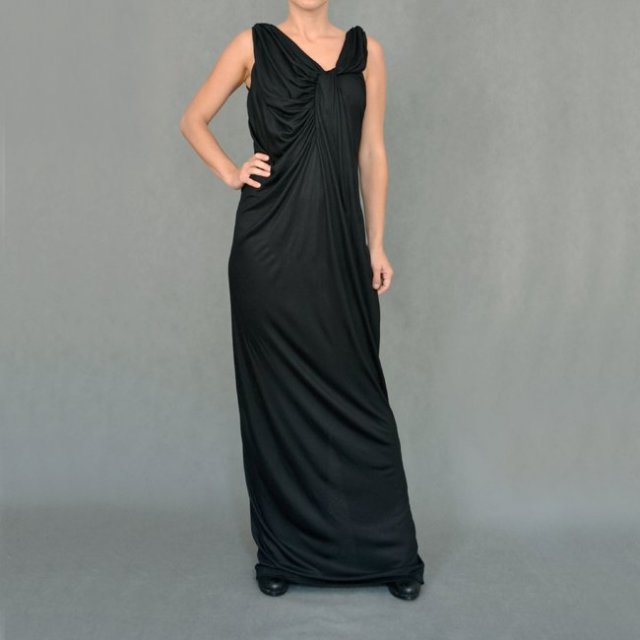 Przepiękna długa sukienka od H&M. Prosta, na górze drapowana. Pięknie wycięte plecy z fałdą. Polecam na wyższe Panie - można też ją skrócić bez obaw o utratę fasonu.
