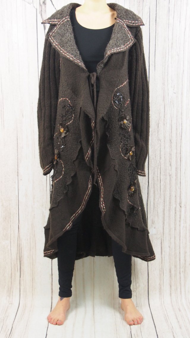 Długi zdobiony sweter z wełny 20%, moheru 15%, poliestru 15%, nylonu 10%, akrylu 40%.