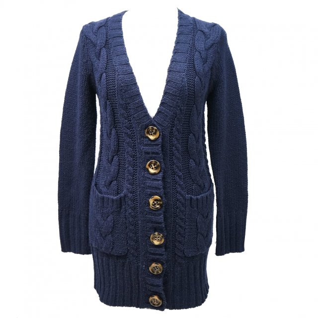Świetny granatowy gruby kardigan z pięknymi dużymi guzikami