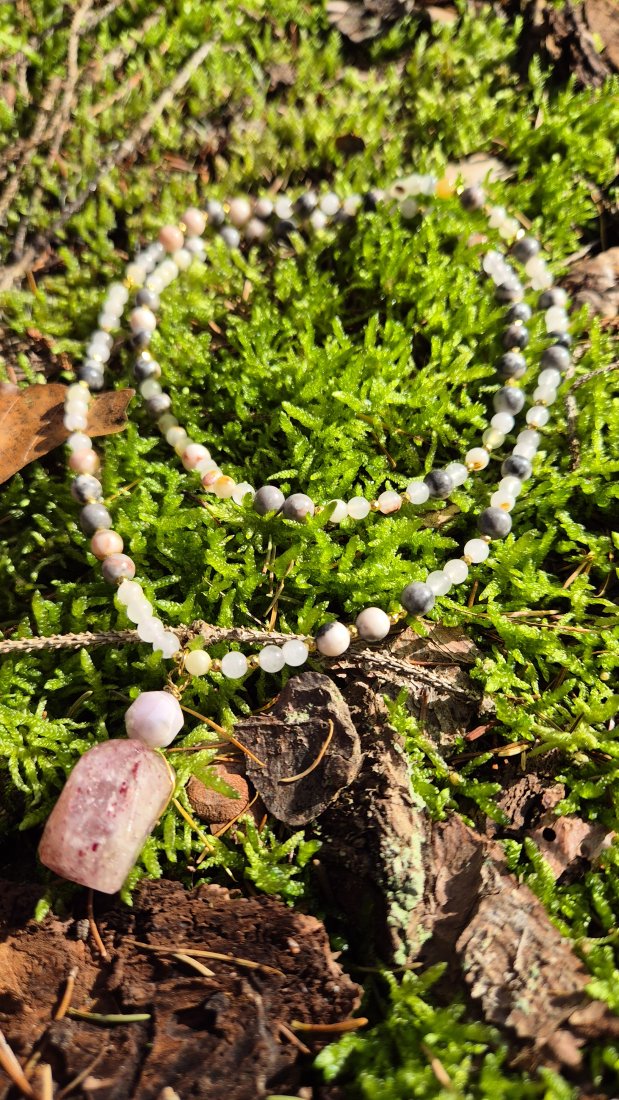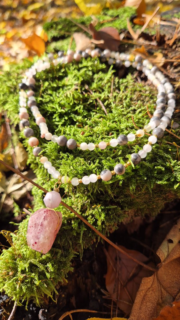 To połączenie kamieni tworzy talizman spokoju, równowagi i miłości. Idealny dla osób poszukujących harmonii emocjonalnej, ochrony przed negatywnymi wpływami i przypomnienia o pięknie tkwiącym w codzienności. Każdy kamień został dobrany z troską, dzięki czemu naszyjnik jest niepowtarzalny – jedyny taki egzemplarz na świecie.