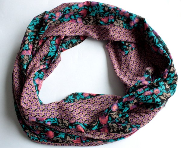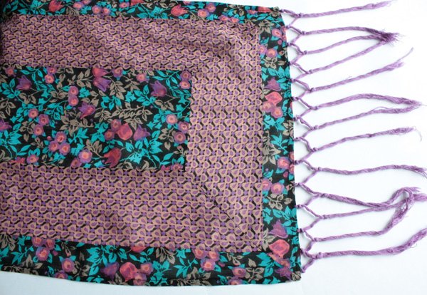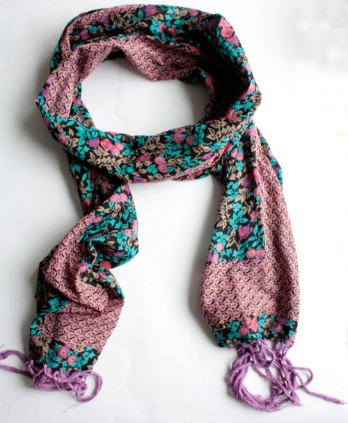 Bardzo dług, miękki szal we wzory. Materiał to prawdopodobnie bawełna lub wiskoza.