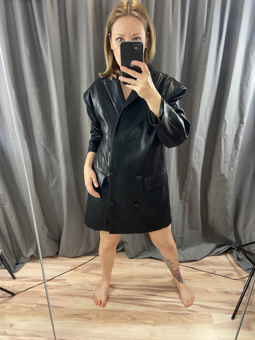 Boski długi żakiet/można nosić jako sukienkę, można nosić jako płąszczyk. Krój pudełkowy. W biodrach kieszenie. Posiada przemiłą podszewkę.