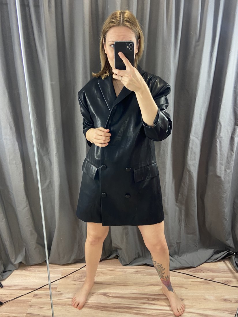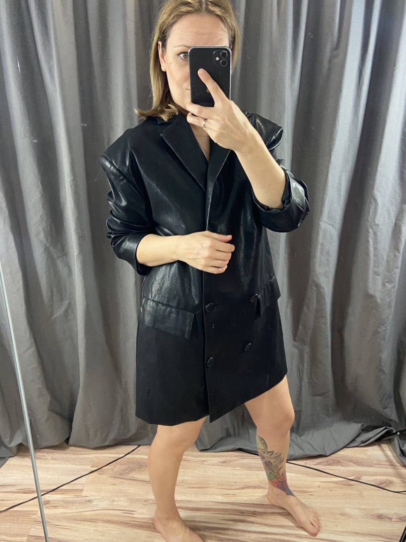 Boski długi żakiet/można nosić jako sukienkę, można nosić jako płąszczyk. Krój pudełkowy. W biodrach kieszenie. Posiada przemiłą podszewkę.