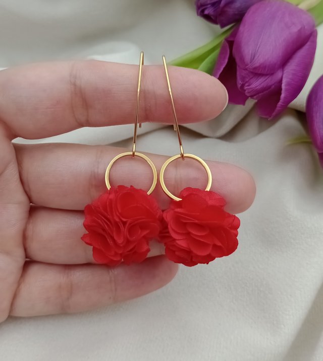 Kolczyki wykonane ręcznie, z wiskozy formowanej w płatki kwiatów.