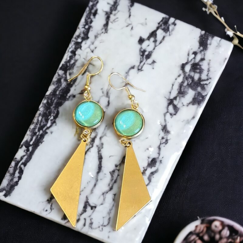 To kolczyki, które łączą złoty połysk, świeżość seledynu i lekkość ruchu – idealne na co dzień i wyjątkowe okazje. ????????