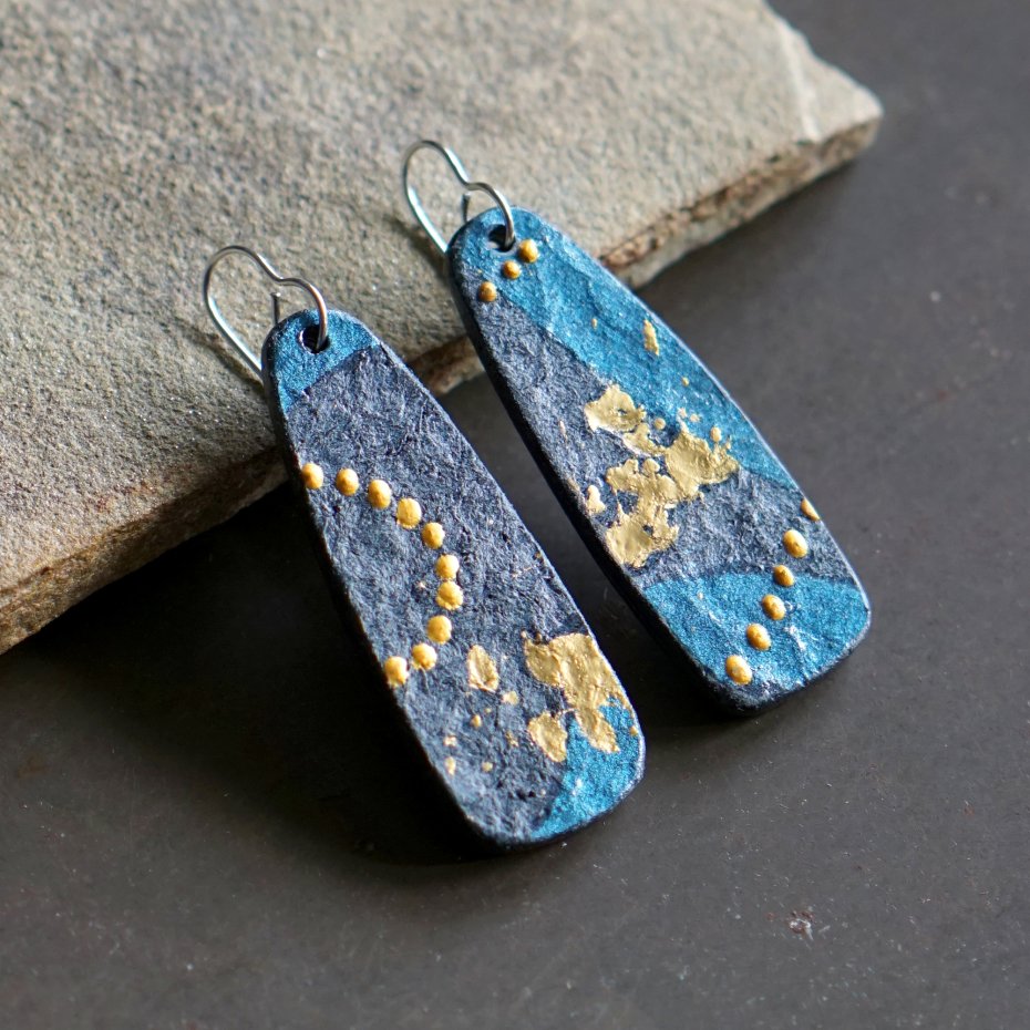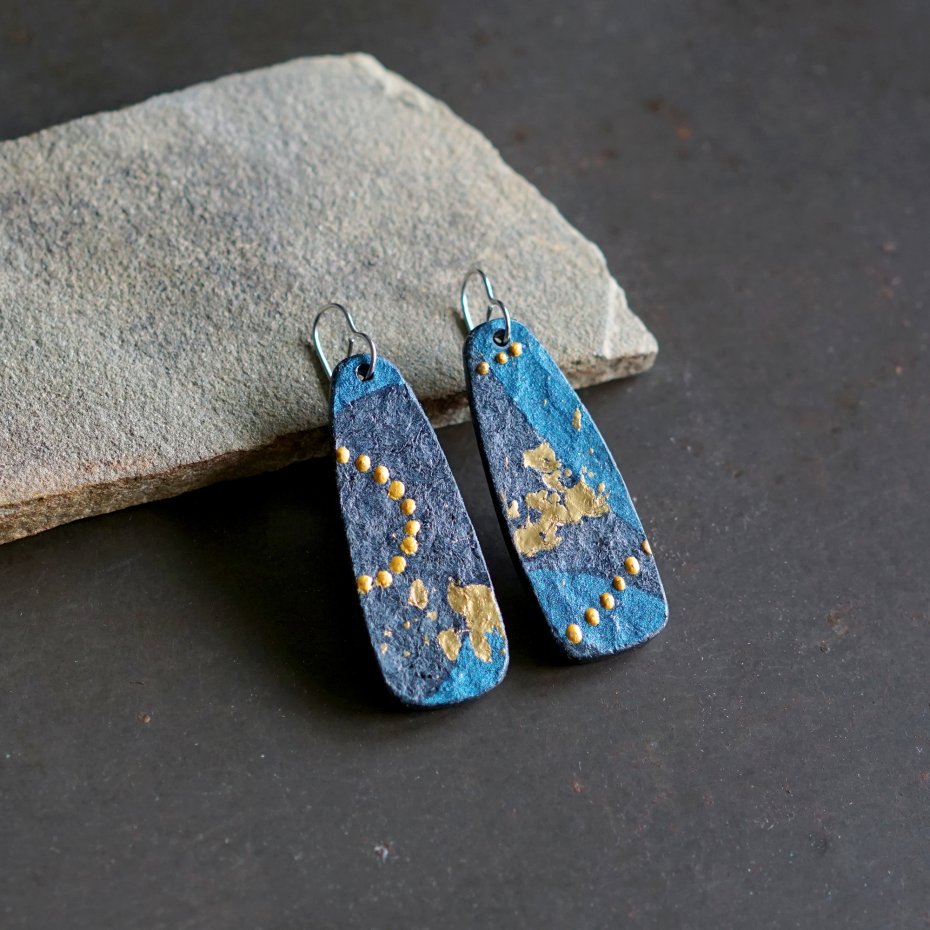 Tagi: #duże kolczyki z papieru, #długie wiszące kolczyki, #lekkie nowoczesne kolczyki, #modne niebieskie kolczyki