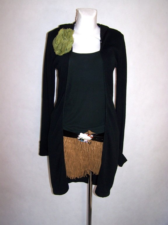 Czarny długi sweterek na suwak z kapturkiem,świetnie wygląda po prostu luźno zarzucony nie zasunięty na inny ciuszek.