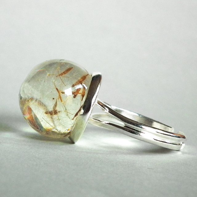 Pierścionek z prawdziwym dmuchawcem zatopionym w żywicy.