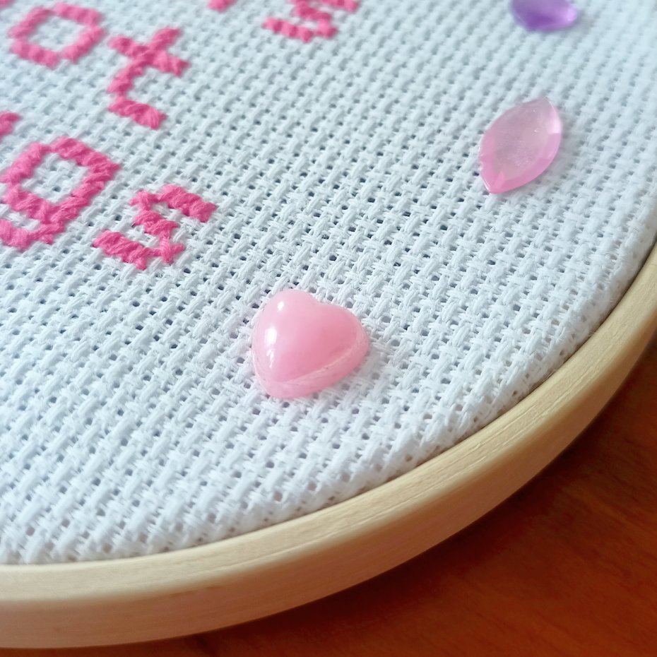 Kanwa bawełniana, nić bawełniana, tamborek drewniany, średnica 13,5 cm