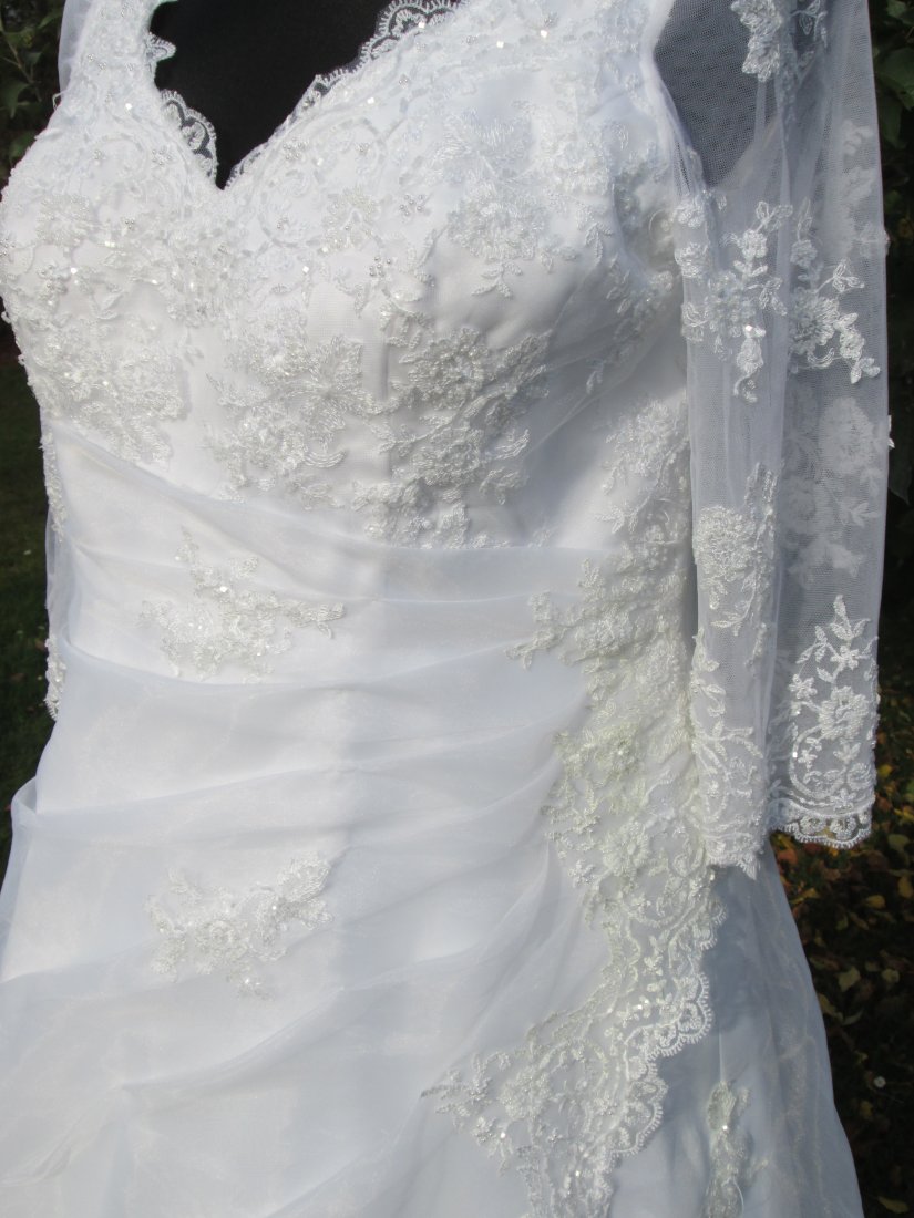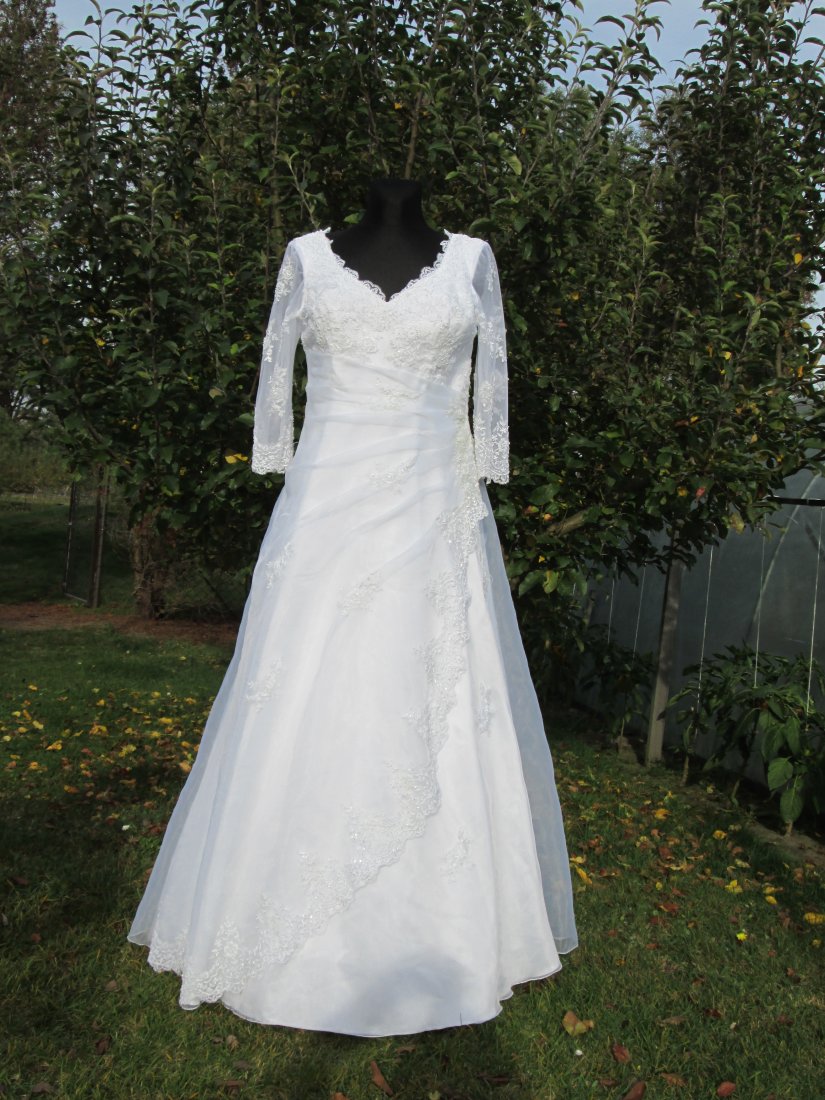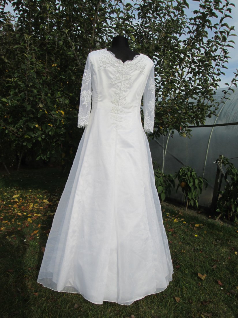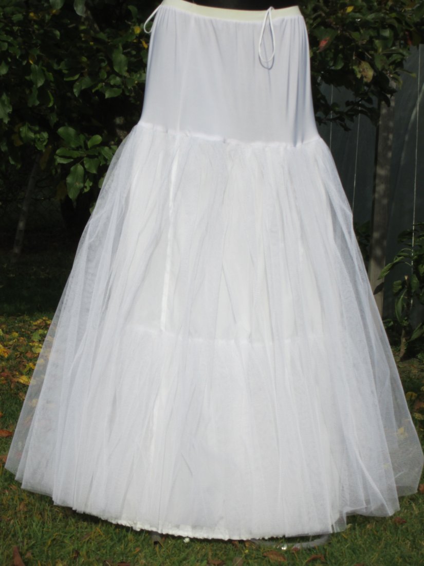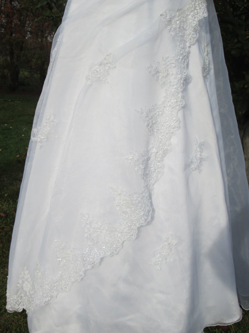 Z przodu tiul ze zdobieniami,lecący na ukos.