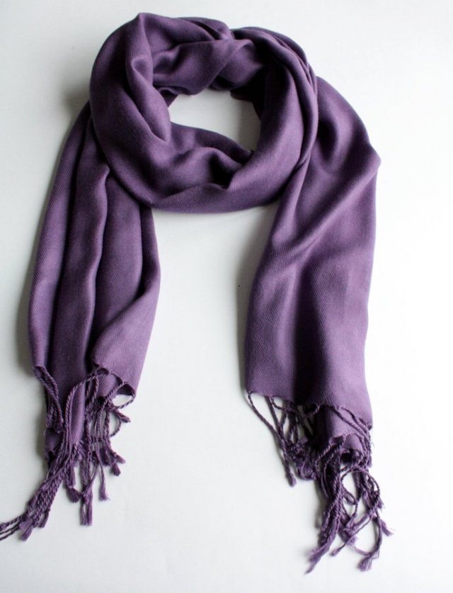 Miękki, duży szal w pięknym odcieniu fioletu. Materiał to prawdopodobnie wiskoza.