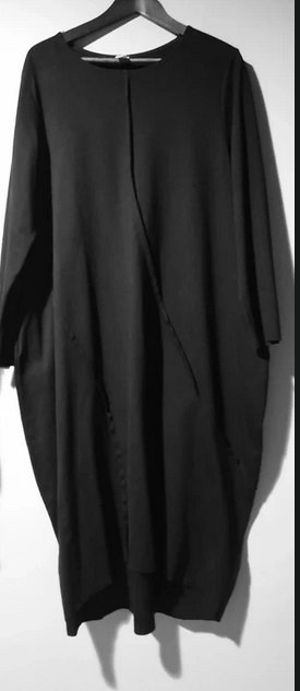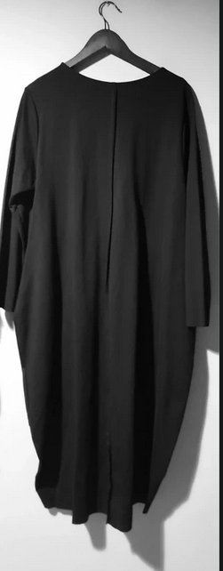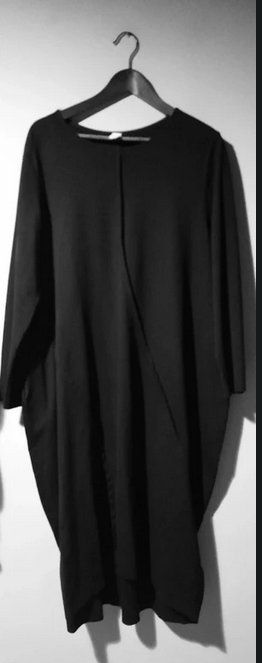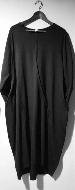 Doskonała gatunkowo dzianina viscoza 65 nylon elastan optycznie I w dotyku jak cotton lekko rozciągliwa surowe wykończenia długość 123/119 szerokość pod pachami 55x2 bez naciągania biodra ok 75x2 kieszenie w szwach fason zwężajacy się do długość stan idealny