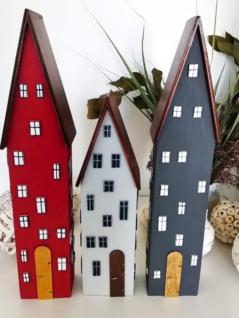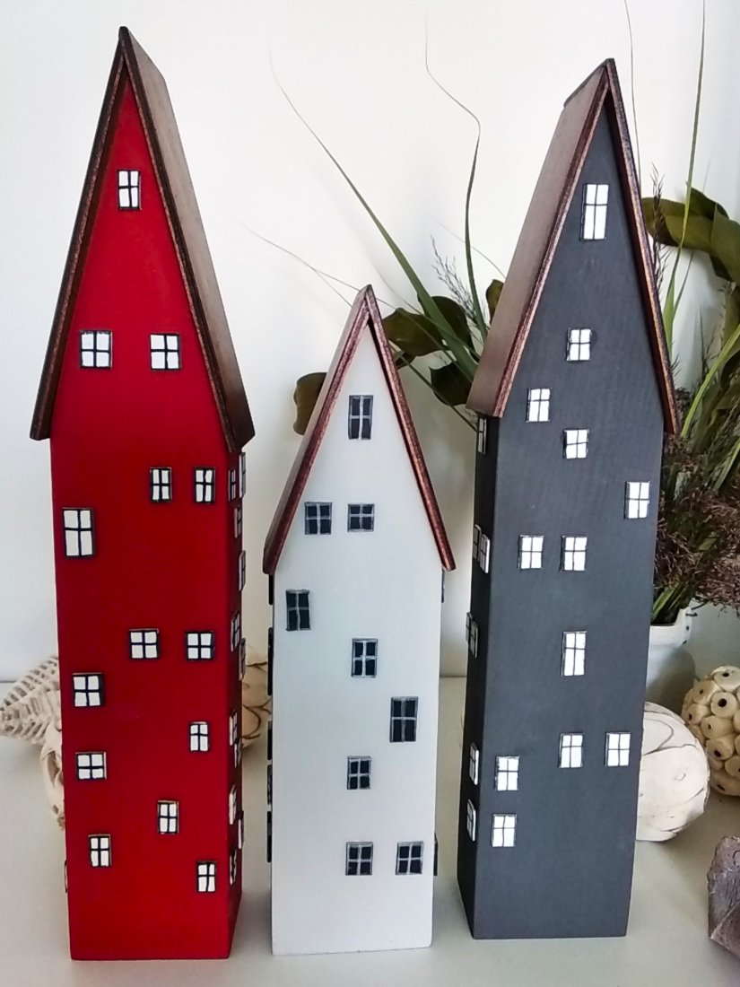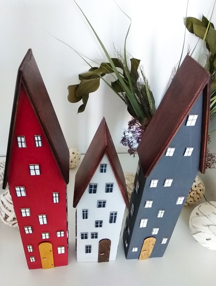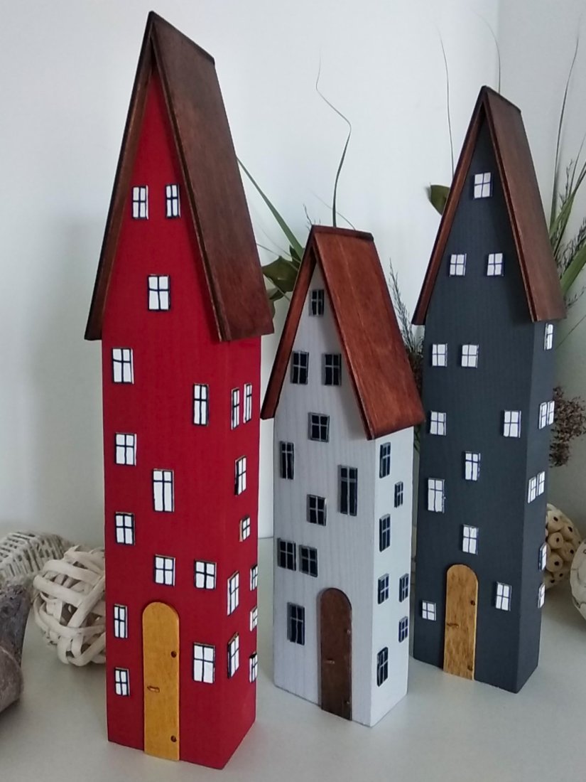 Tagi: #dekoracja pokoju, #drewniane domki dekoracyjne, #kolorowe domki drewniane, #ozdobne rękodzieło