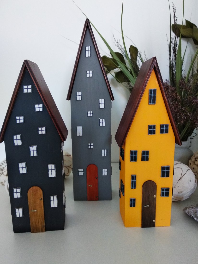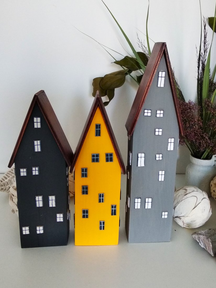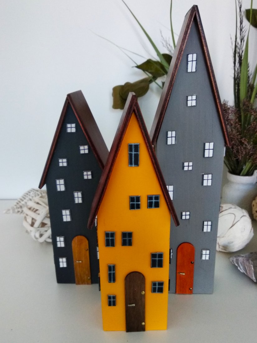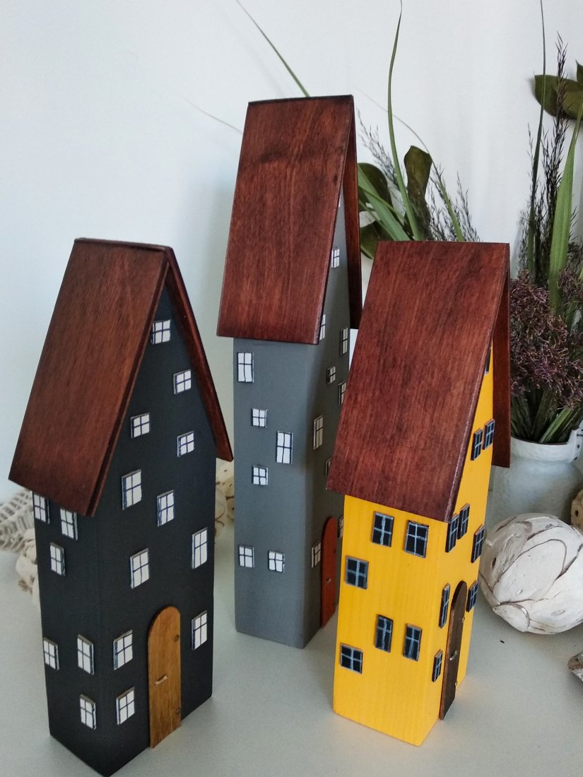 Tagi: #dekoracja pokoju, #drewniane domki dekoracyjne, #kolorowe domki drewniane, #ozdobne rękodzieło