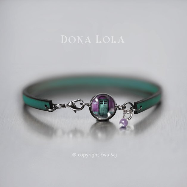 Oryginalna delikatna, kobieca bransoletka z fotografią mojego autorstwa. Grafika została ukryta pod 10 mm wypukłym szkiełkiem. Pasek z naturalnej skóry w kolorze morskiej zieleni ma szerokość 5 mm, dodatki w kolorze ciemnego srebra. Idealna na nadgarstek 14,5 - 15,5 cm. Zrób sobie prezent! Wolny od niklu i ołowiu - antyalergiczny. copyright Ewa Saj. All Rights Reserved.