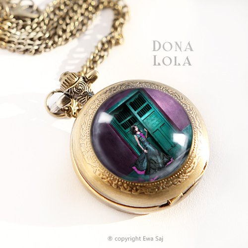 Piękny i magiczny sekretnik z zegarkiem. Bazę w kolorze antycznego złota, ozdobiłam autorską grafiką, ukryłam ją niczym sekret pod szklaną kopułą przeźroczystego szkiełka. Wewnątrz sekretnika - zegarek. Średnica naszyjnika 38 mm, Wielkość fotograficznej miniatury 25 mm. Długość łańcuszka 80 cm.