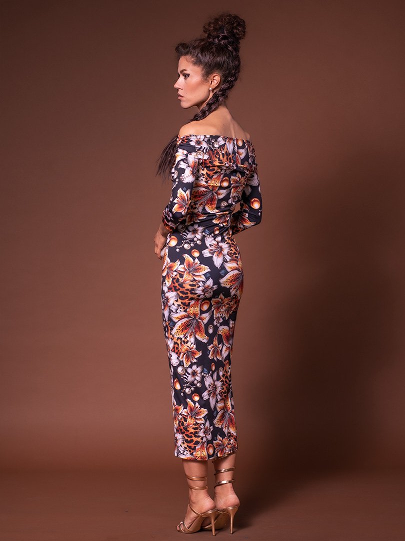 Sukienka zaprojektowana, aby wzbudzać zachwyt. Jest dopasowana, długa i ponadczasowa. Dzięki odpowiednim rozwiązaniom konstrukcyjnym i technicznym odsłania ramiona, pięknie je podkreślając i jednocześnie utrzymuje się na miejscu.
