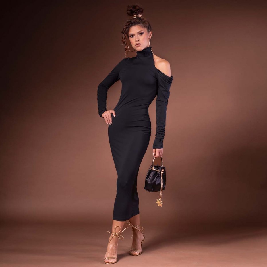 Sukienka jest uszyta z nowoczesnego jersey'u, wyprodukowanego z mikrowłókna z dodatkiem elastanu, który poprzez zastosowanie specjalnej technologii pozwala na idealne dopasowanie kreacji do sylwetki a jednocześnie nie prześwituje. Jest to dzianina hydrofilna - szybko wchłania wilgoć i odprowadza ją na zewnątrz a dzięki apreturze szybkoschnącej skraca czas suszenia. Wszystko to daje idealną przewiewność i uczucie miękkości. Odpowiednio rozwieszona po praniu nie wymaga prasowania.