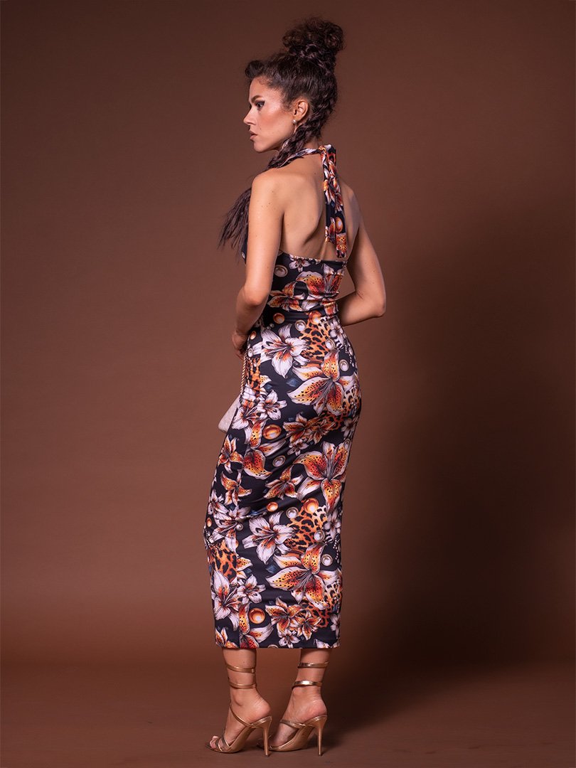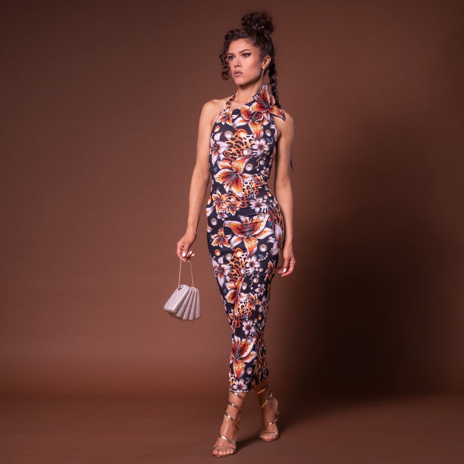 Wyjątkowa sukienka, która przyciąga uwagę swoim niebanalnym designem. Jej krój doskonale podkreśla sylwetkę, a ręcznie wykonany kwiat stanowi wyjątkową ozdobę. Został on wycięty z tego samego materiału, co sukienka i specjalnie usztywniony, dzięki czemu zachowuje swój kształt.