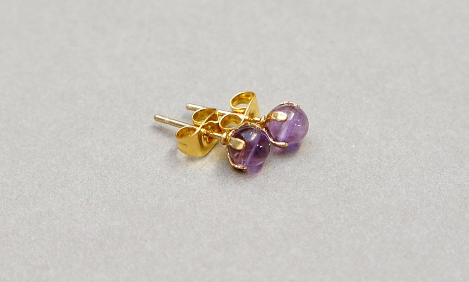 Delikatne, drobne kolczyki wykonane z naturalnych minerałów - ametysty [5mm] oraz z pozłacanej stali szlachetnej. Zapięcie - sztyfty;