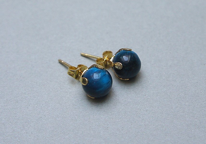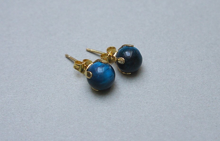 Delikatne kolczyki wykonane z naturalnych minerałów - tygrysie oko [8mm] oraz ze stali szlachetnej. Zapięcie - sztyfty; Biżuteria ozdobnie zapakowana.