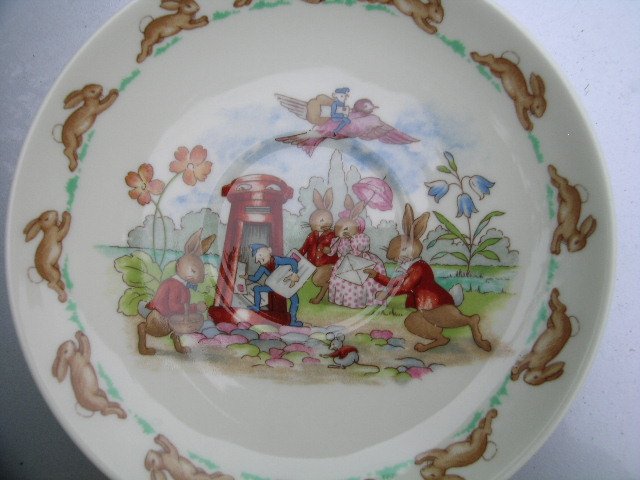 Porcelanowy Półgłęboki Talerzyk - Spodeczek sygnowany jakością ROYAL DOULTON Made in England Fine Bone China England BUNNY KINS Reg. Trade Mark.