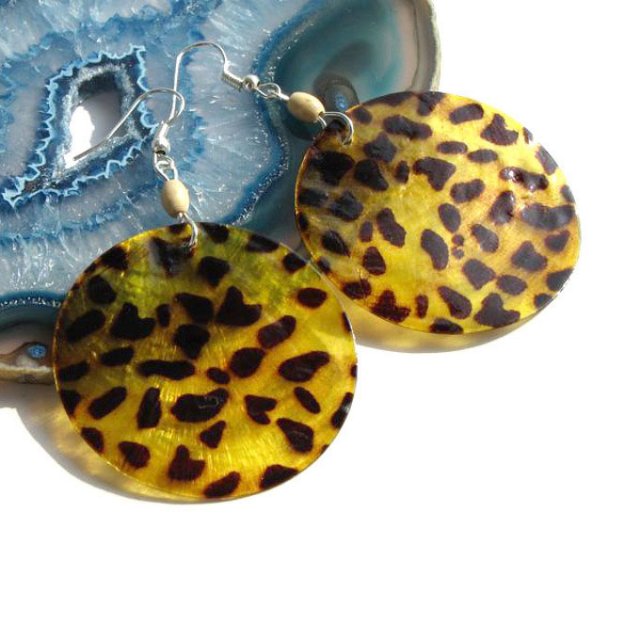 Lekkie kolczyki wykonane z płatków macicy perłowej [45 mm], lakierowanego drewna i posrebrzanych elementów