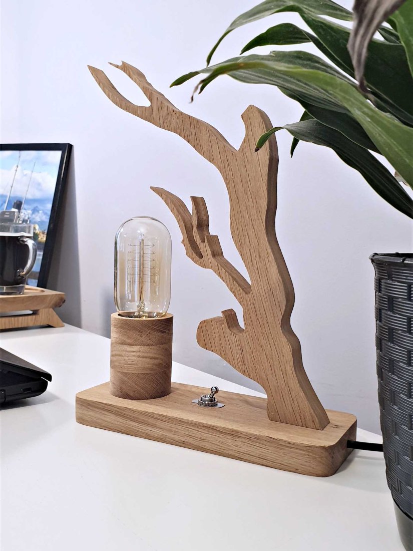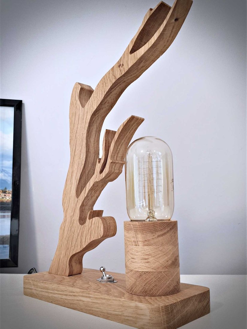 Ta niezwykła lampka to połączenie natury i designu. Wykonana ręcznie z litego drewna dębowego, zachwyca formą przypominającą gałąź drzewa – każdy detal został dopracowany tak, aby podkreślić unikatowy charakter i szlachetną fakturę dębu. To nie tylko źródło światła, ale i dekoracja, która przyciąga wzrok i nadaje wnętrzu wyjątkowego klimatu.