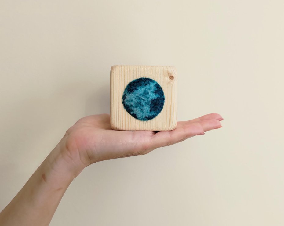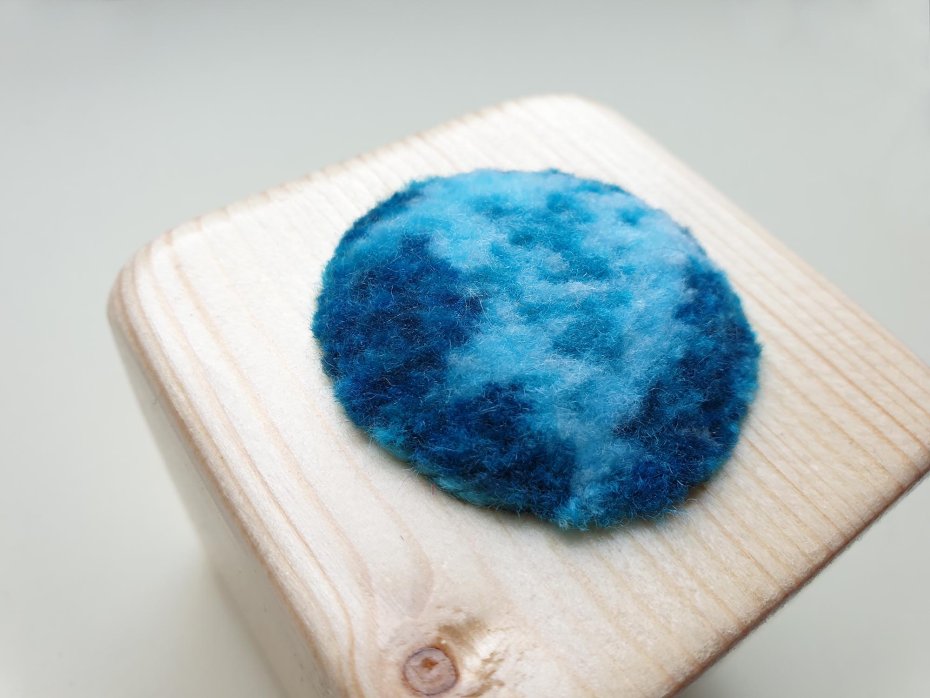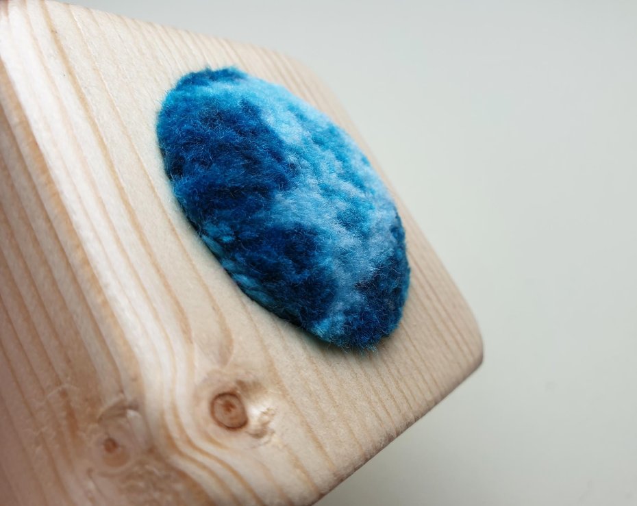 Kontrast faktur – twardego drewna i miękkiej włóczki – sprawia, że ta mała ozdoba wyróżnia się w tłumie dodatków. Przyciąga uwagę, zapada w pamięć i... wywołuje uśmiech.