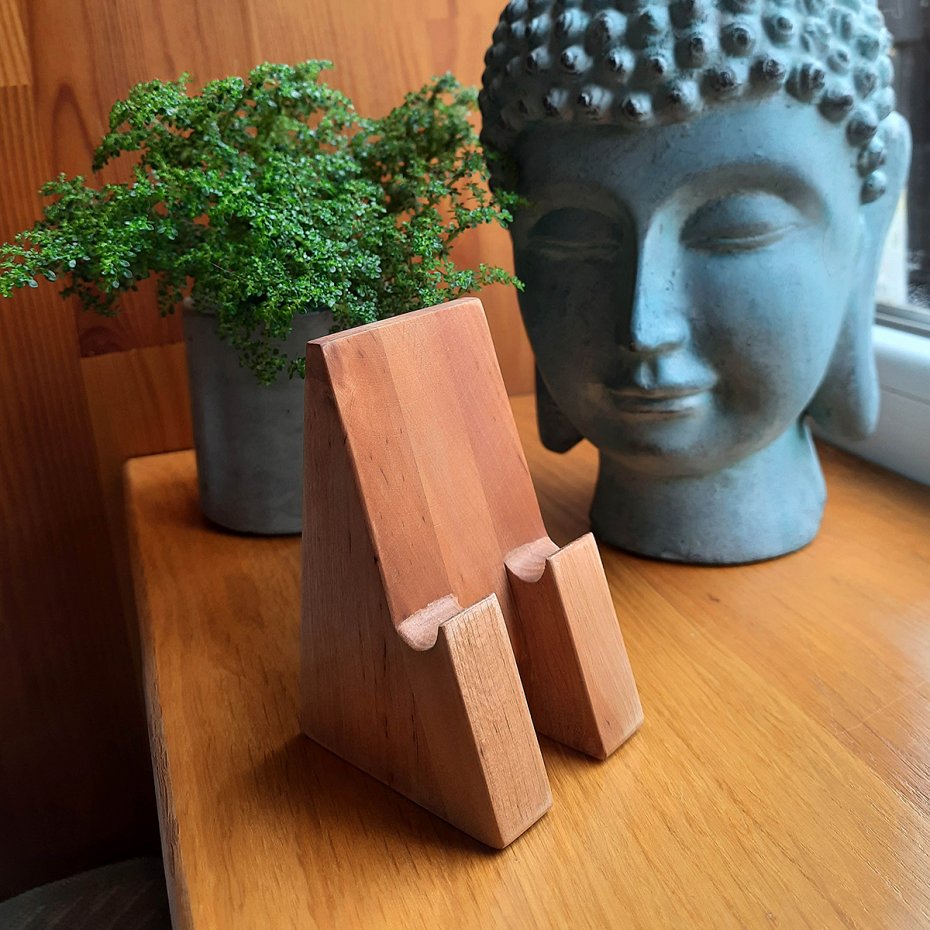 Drewniana podstawka pod telefon lub tablet wykonana z naturalnego drewna zapewni wygodę i stabilność użytkowania. Uchwyt ma idealnie wyważony kąt widzenia. Można ładować urządzenie w trakcie korzystania z uchwytu.