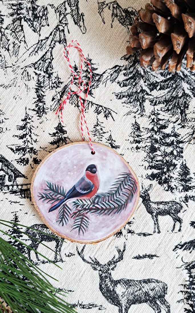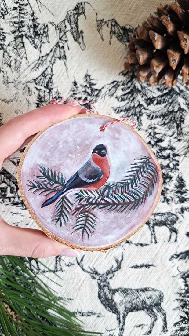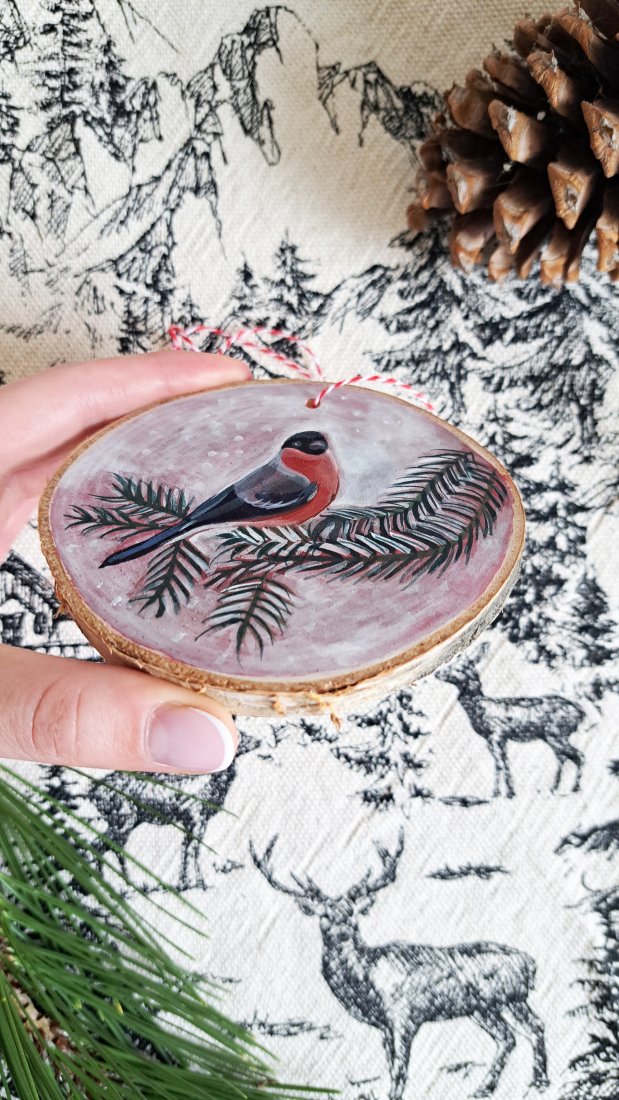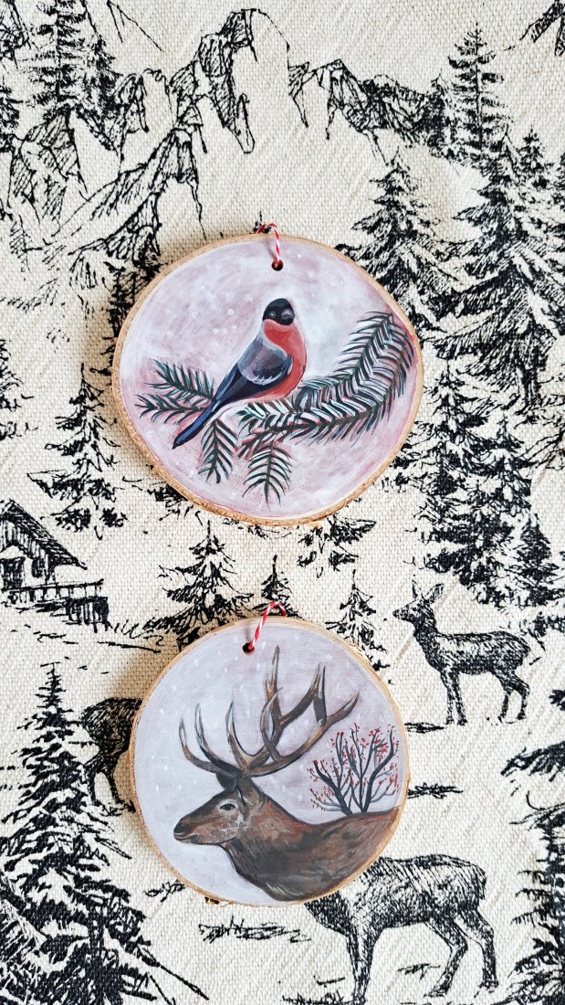 Ręcznie robione ozdoby świąteczne i choinkowe z plastrów drewna, ręcznie malowane przeze mnie, handmade.