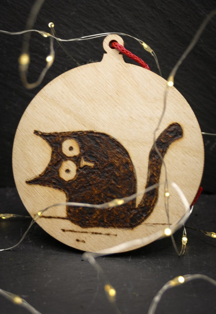 DREWNIANE WYPALANE RĘCZNIE BOMBKI - KOT 1 - ŚWIĘTA, MIKOŁAJKI, BOŻE NARODZENIE, PREZENT, UPOMINEK, GWIAZDKA, ZABAWNE