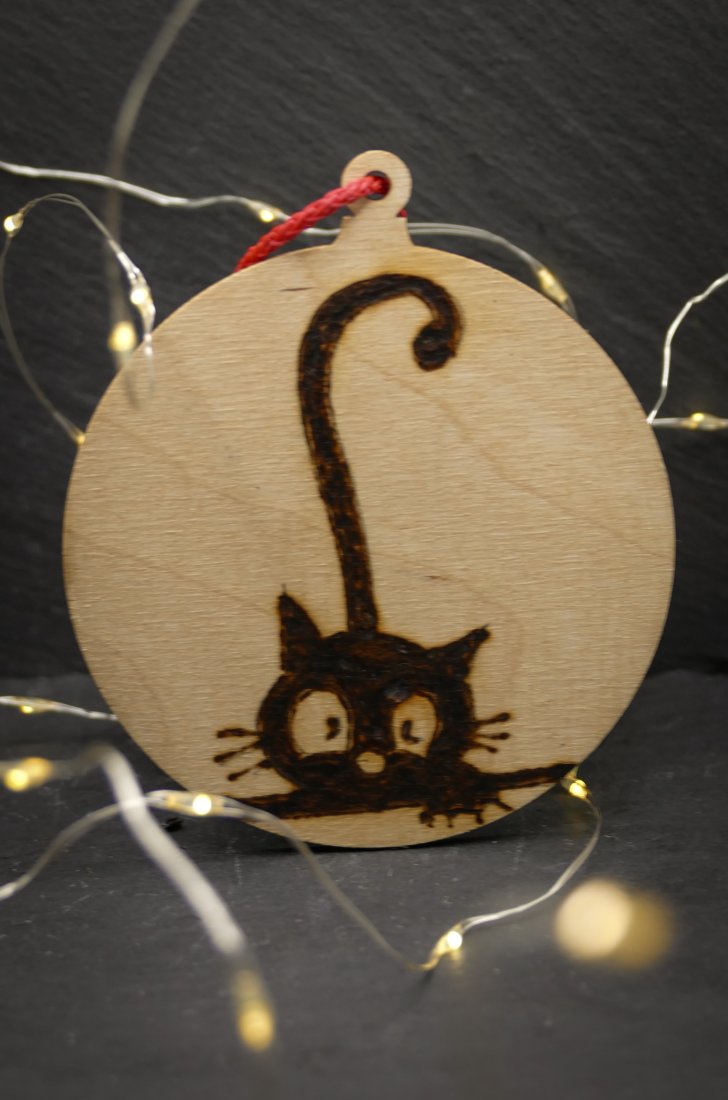 4.  > Drewniane wypalane ręcznie bombki - kot 11 - święta, mikołajki, boże narodzenie, prezent, upominek, gwiazdka, zabawne (nr 7090365)