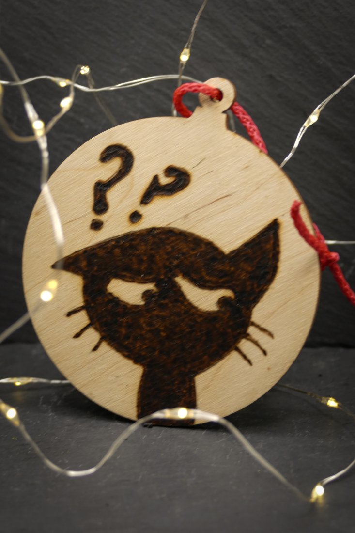 4.  > Drewniane wypalane ręcznie bombki - kot 3 - święta, mikołajki, boże narodzenie, prezent, upominek, gwiazdka, zabawne (nr 7090373)