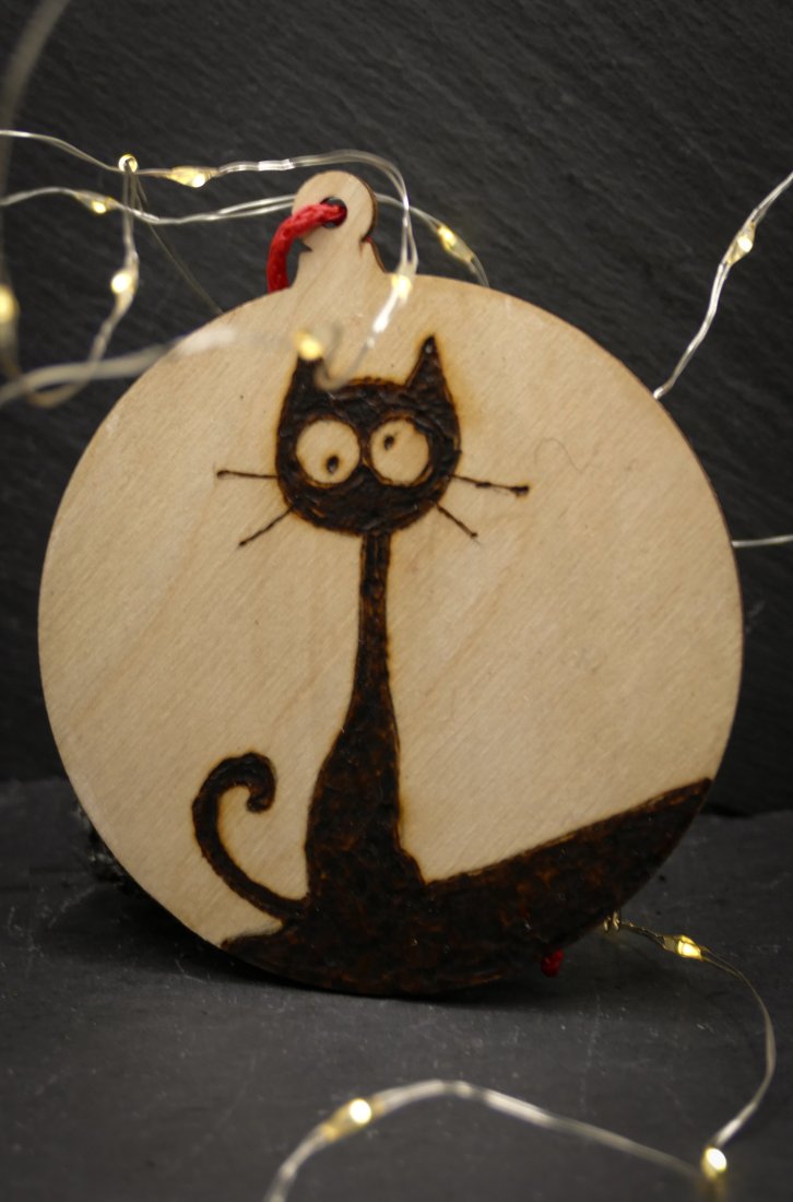 4.  > Drewniane wypalane ręcznie bombki - kot 6 - święta, mikołajki, boże narodzenie, prezent, upominek, gwiazdka, zabawne (nr 7090370)